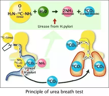 尿素C13呼气试验是最快速确认Hp感染的非创伤性试验。同位素C13无放射性,安全准确实用,无交叉感染,环境无污染。是确认抗Hp治疗后Hp是否根除最准确的方法,无需胃镜复查。